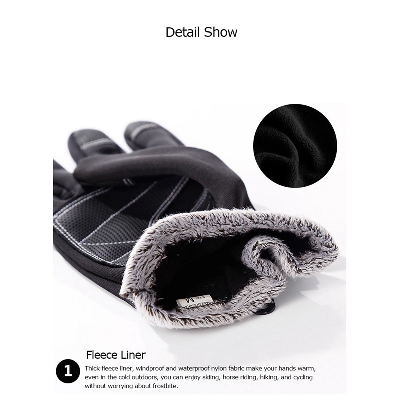 Winter Themal Touchscreen Gloves Anti-Slip Windproof Cycling Gloves w/ Fleece Lining Adjustable Zipper Anti-Lost Buckle Camping