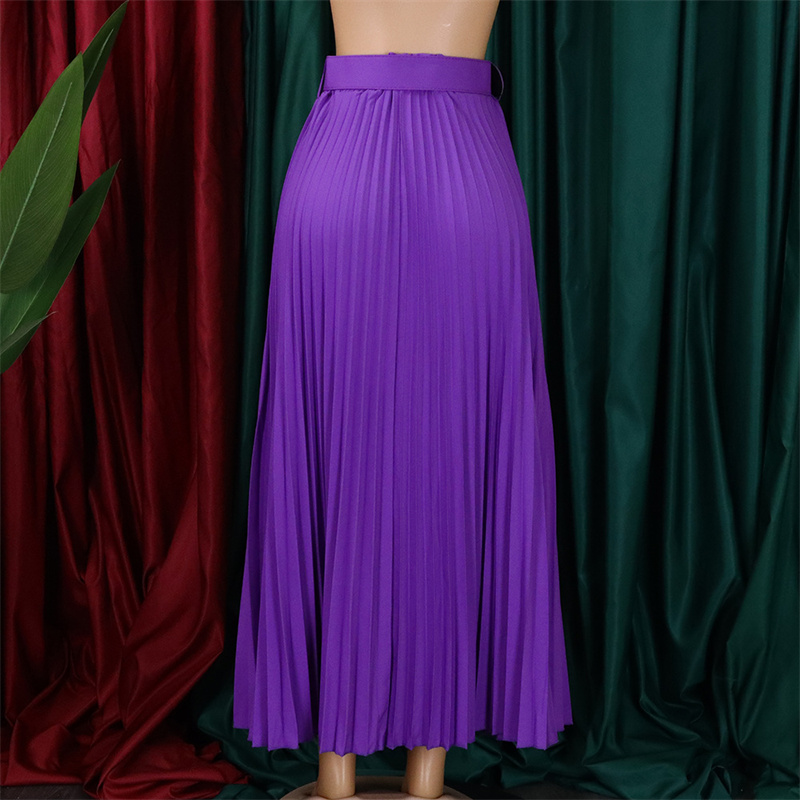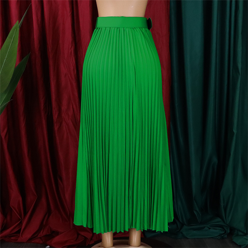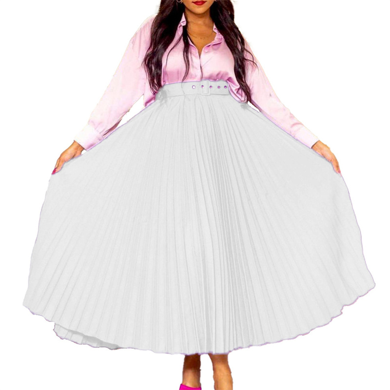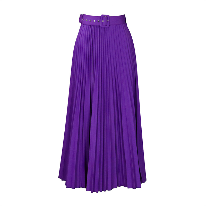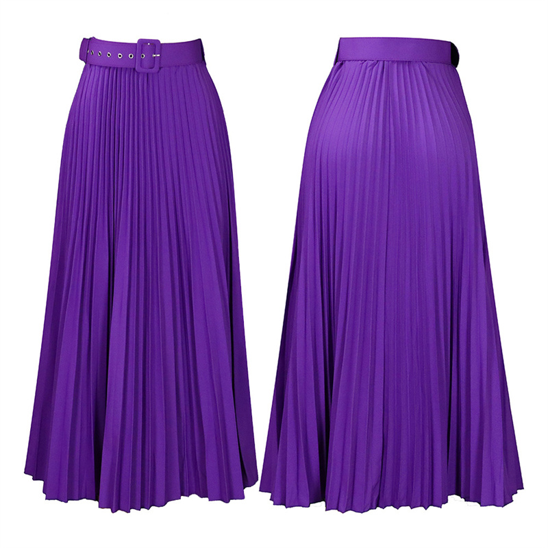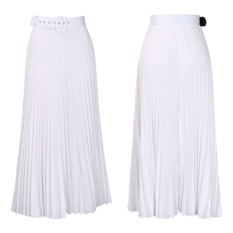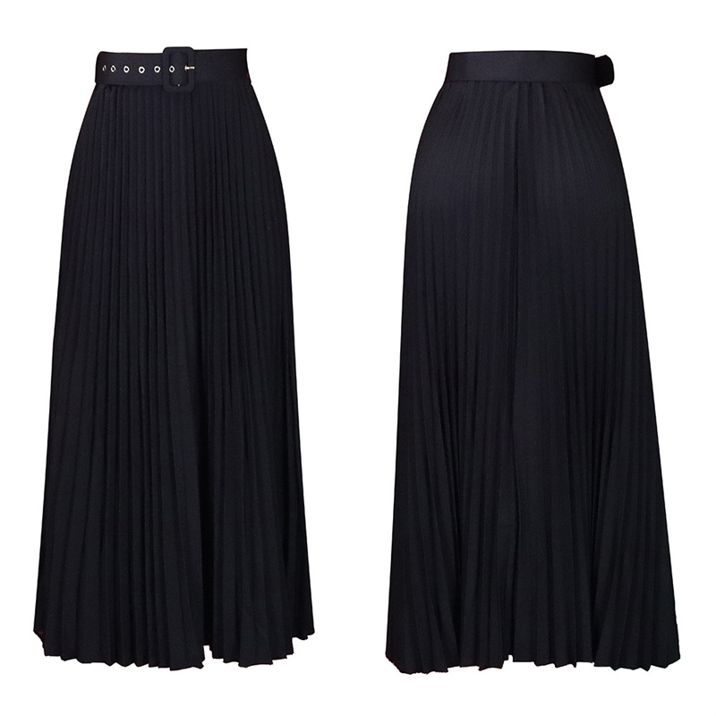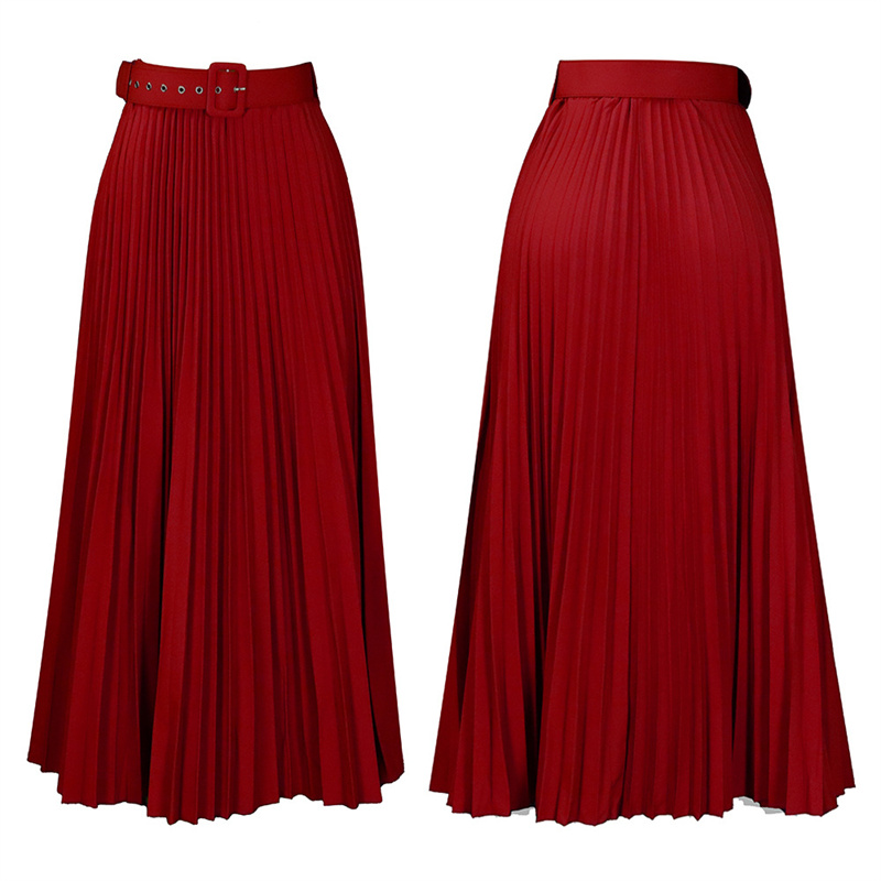 With Belt Women’s Clothing High Waist Large Skirt Mid-Length Pleated Temperament Drape Skirt