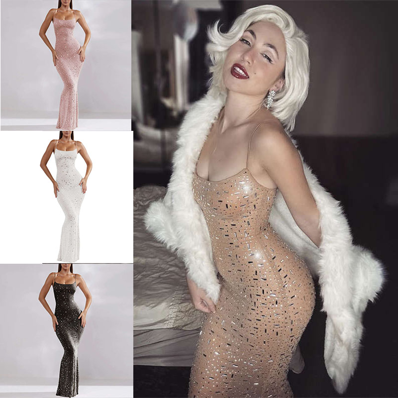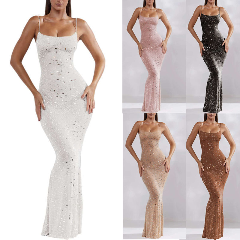 Women’s Clothes Light Diamond Sexy Sling Mermaid Dress Fashion Sleeveless Dress