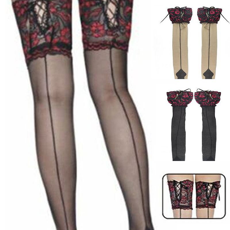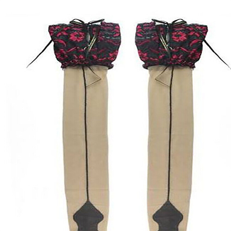 Women’s Super Sexy Black Nude Lace Garter Top Sheer Hold Up Stockings