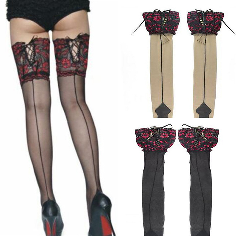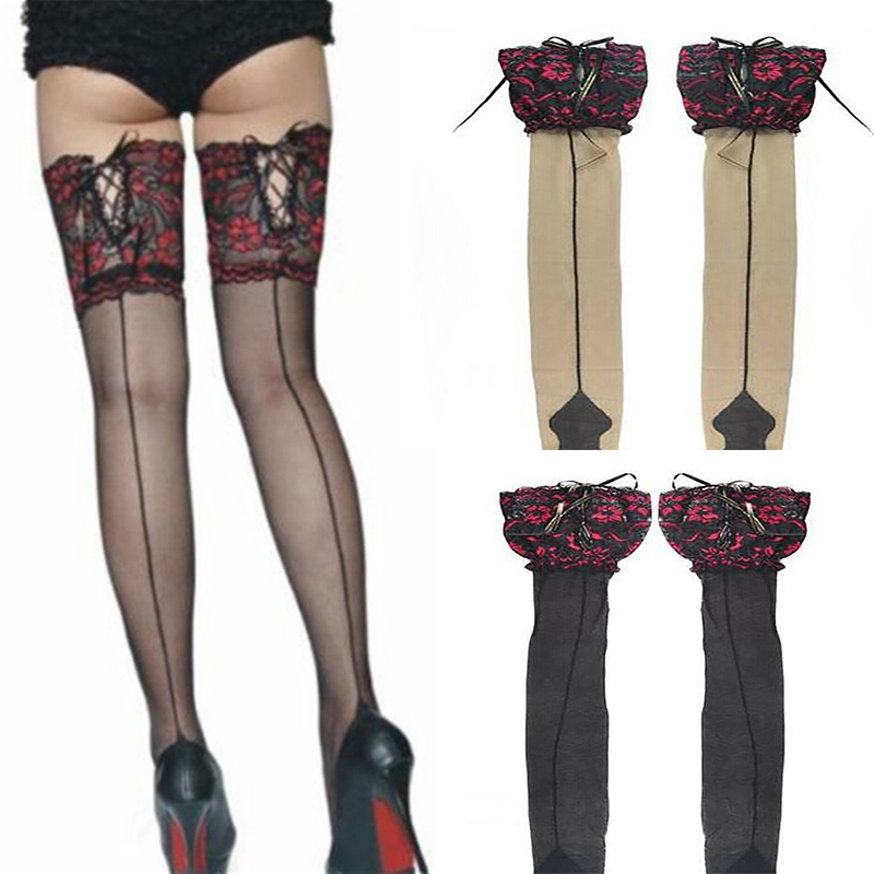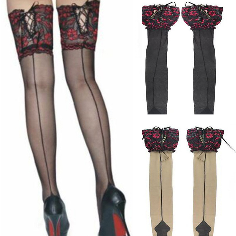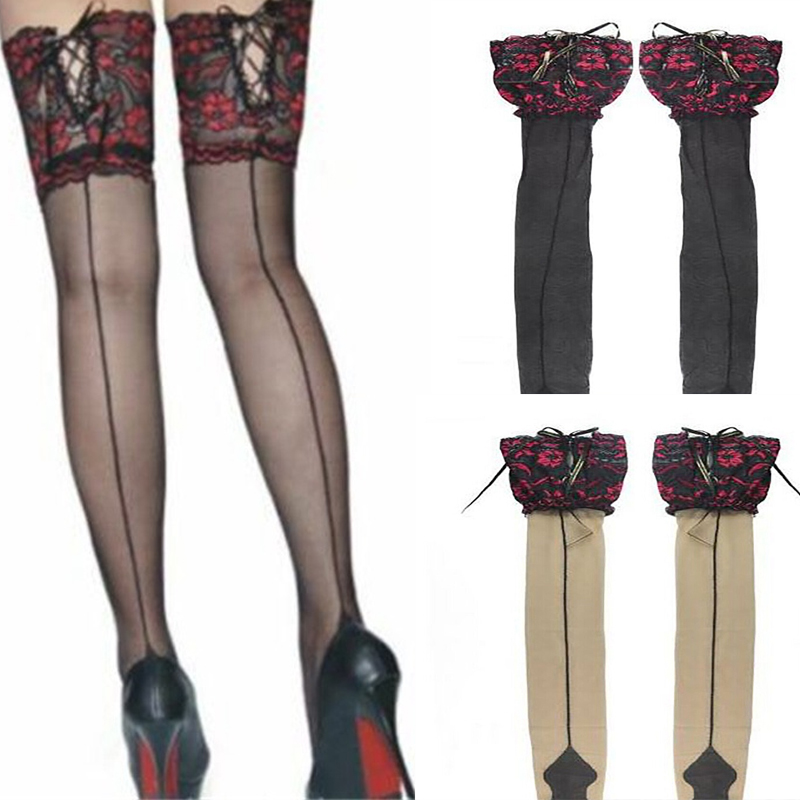 Women’s Sexy Stockings Hold Ups Lace Garter Top Sheer Hosiery Black Nude