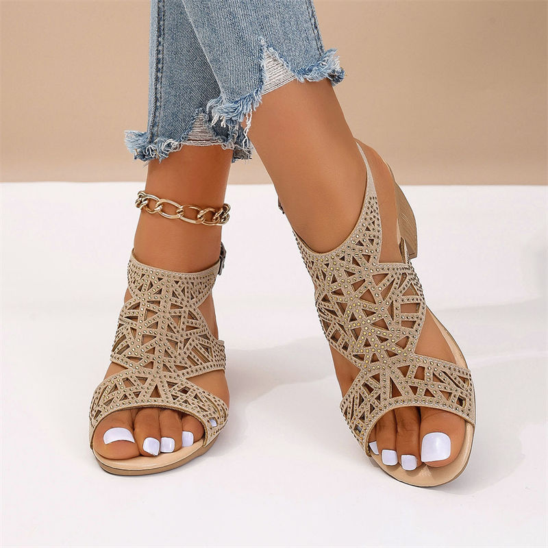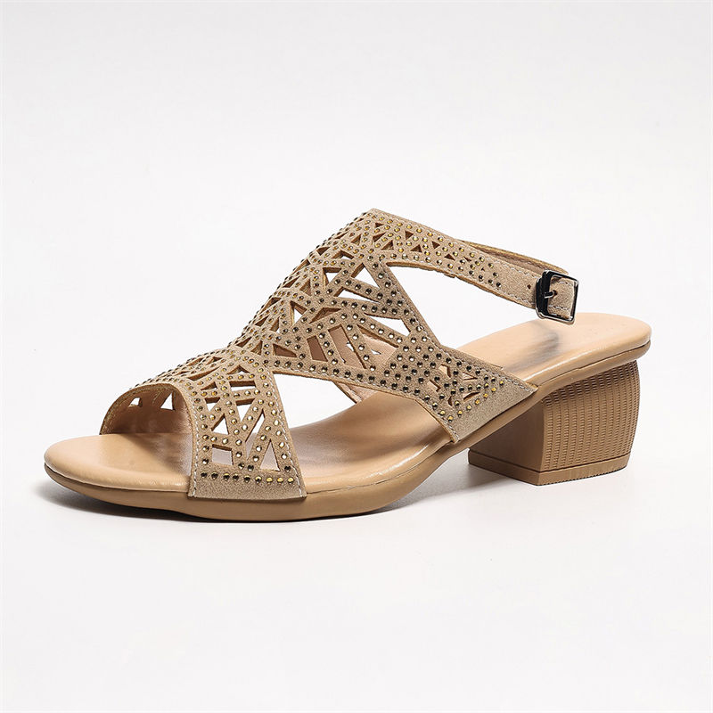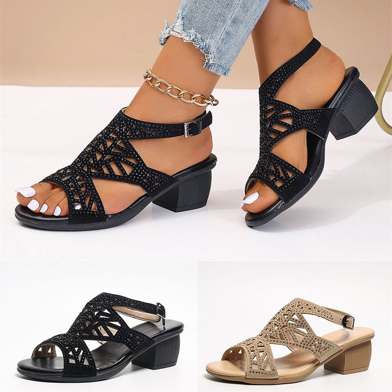 Women’s Shoes Chunky Heel Rhinestone Shoes Hollow out Peep-Toe High-Heeled Sandals